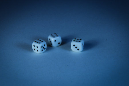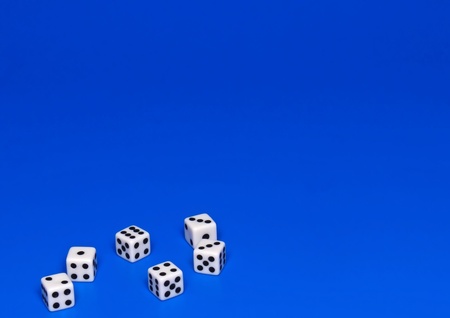 Dice on a blue background. Game, business, solutions, concept. Copy space.