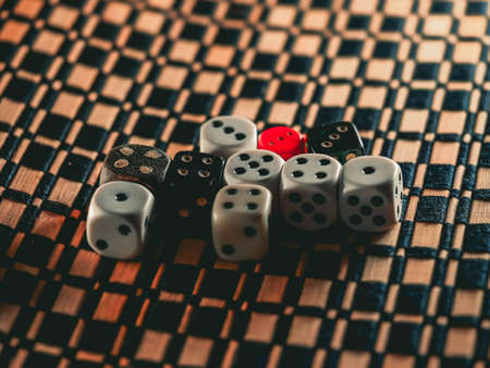 Colorful dices on the map. The concept of board games and a lucky chance to win