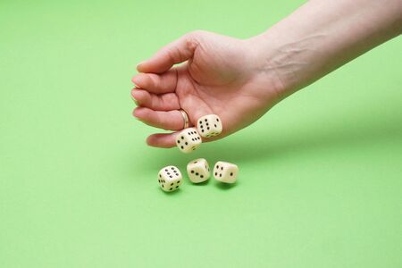Dice are thrown on the table. Dice game on white background.