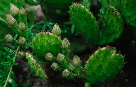 Beautiful cactus in garden. Widely cultivated as an ornamental plant. Selective focus close-up shot.