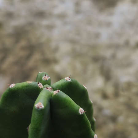 Cactus background with spikes. Top view. Copyspace. Selective focus.