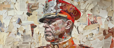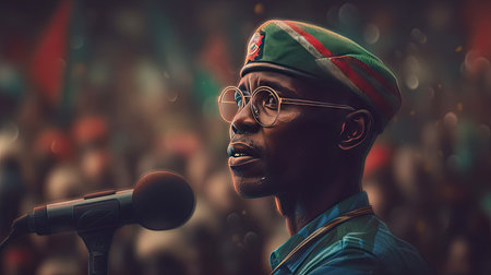 Powerful leader in outfit commanding a totalitarian group. Concept Totalitarian regime, Military leader