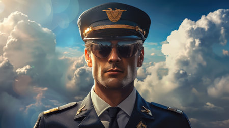 Airplane pilot in contemporary outfit with clear sky