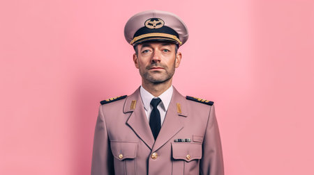 Portrait of a man in the form of a pilot on a pink background
