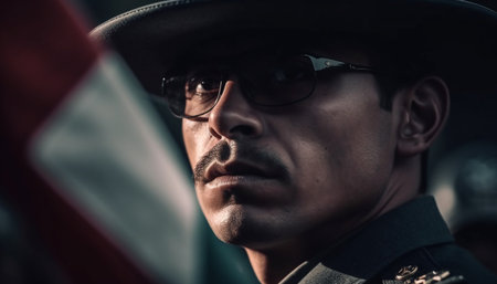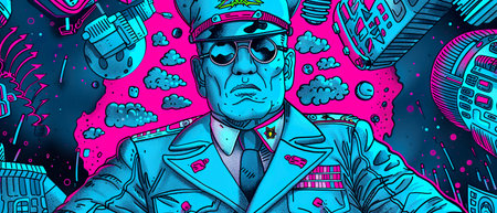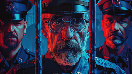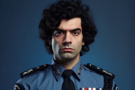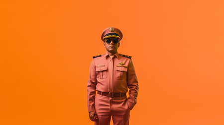 Disguised man, serious look, police officer with vibrant colors and clothing.