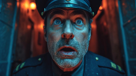Portrait of a policeman with a scared face
