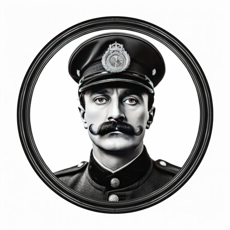 Portrait of a policeman in a round frame. Isolated on white background