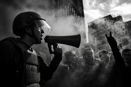 Political Rally with Protest Banner and Megaphone