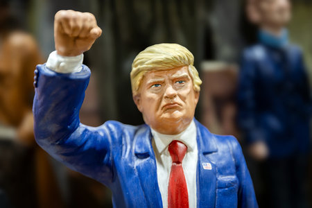 Naples, Italy - December 26, 2025: A handcrafted figurine depicting US President Donald Trump with his arm raised in victory, displayed in San Gregorio Armeno.