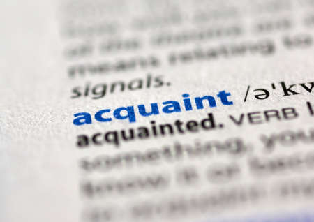 MONTREAL, CANADA - JULY 17, 2019: word acquaint in a dictionay with meaning. Close-up and selective focus.