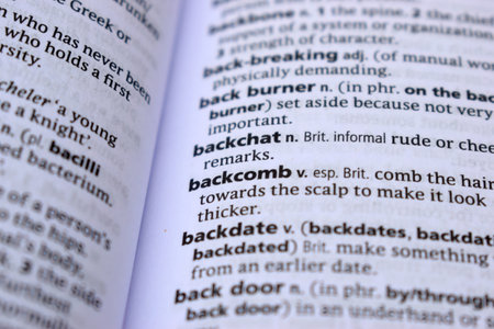 Close Up Of English Dictionary Page With Definition Word - Backcomb Image
