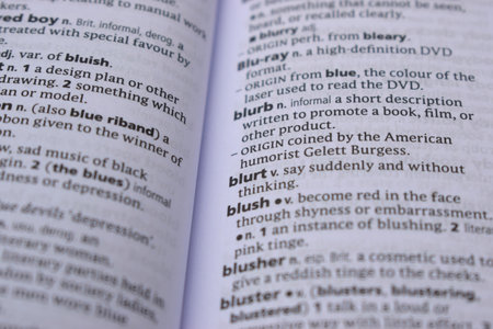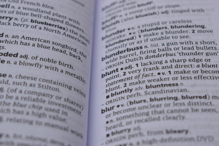 English Definition Dictionary Page Of Printed Word - Blunt Close Up Image