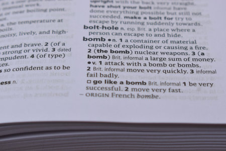 Close Up Of English Dictionary Page With Definition Word - Bomb Image