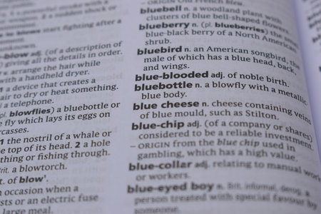 English Definition Dictionary Page Of Printed Word - Bluebottle Close Up Image