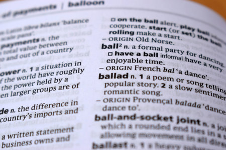 English Definition Dictionary Page Of Printed Word - Ball Close Up Image