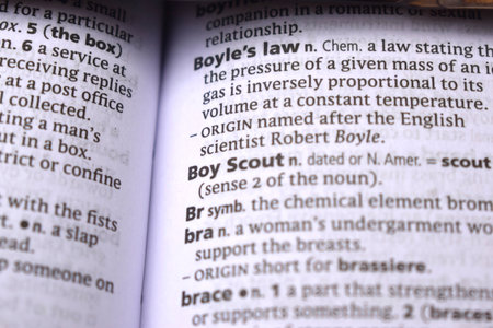 Close Up Of English Dictionary Page With Word - Boy Scout