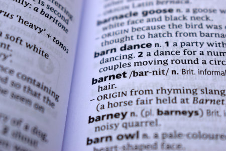 English Definition Dictionary Page Close Up Of Printed Word Of -barnet