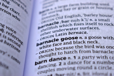 English Dictionary Page Close Up With the Word Of -barnacle goose