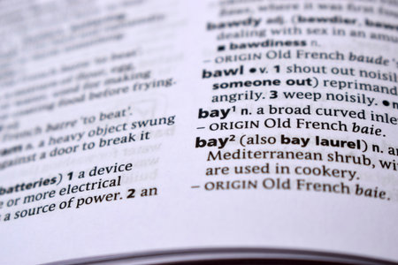 English Definition Dictionary Page Close Up Of Printed Word Of -bay