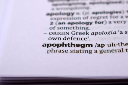 English Definition Dictionary Page Close Up Of Printed Word Of -apophthegm