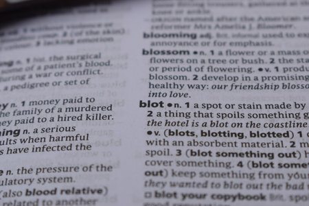 English Definition Dictionary Page Close Up Of Printed Word Of -blot
