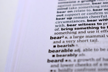 English Definition Dictionary Page Close Up Of Printed Word Of -bear