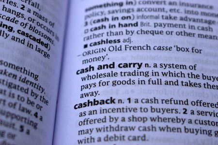 English Dictionary Page Print Close Up With The Word Meaning Of -cash and carry