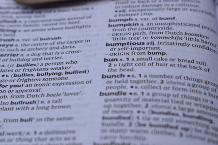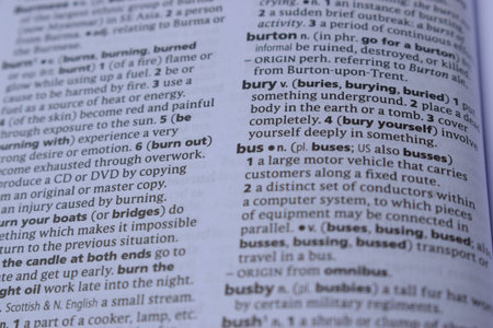 Definition Of English Dictionary Close Up Of Page Print With Word - bus