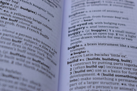Definition Of English Dictionary Close Up Of Page Print With Word - bugle