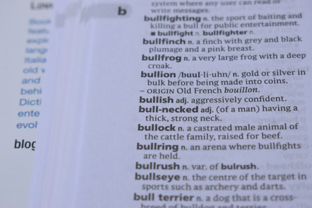 Definition Of English Dictionary Close Up Of Page Print With Word - bullish