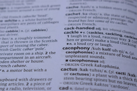 Definition Of English Dictionary Close Up Of Page Print With Word - cacophony