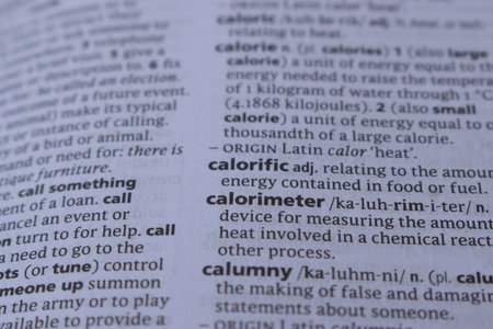 Close Up Of English Definition Dictionary Printed Page Word Of - calorific