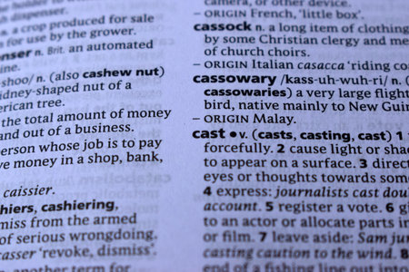 English Dictionary Page Print Close Up With The Word Meaning Of -cast