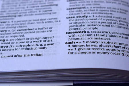 Close Up Of English Definition Dictionary Printed Page Word Of - cash