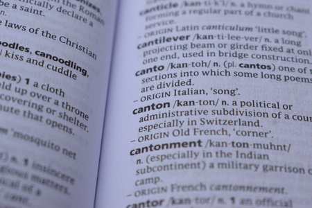 Definition Of English Dictionary Close Up Of Page Print With Word - canton