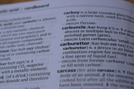 Definition Of English Dictionary Close Up Of Page Print With Word - carburettor