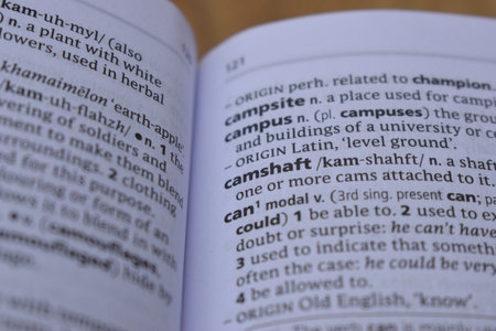 Definition Of English Dictionary Close Up Of Page Print With Word - camshaft