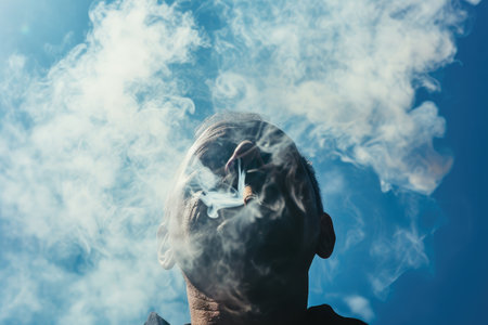 Clouds of Thought: Man Smoking Against Blue Sky