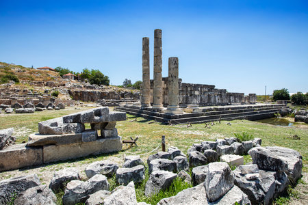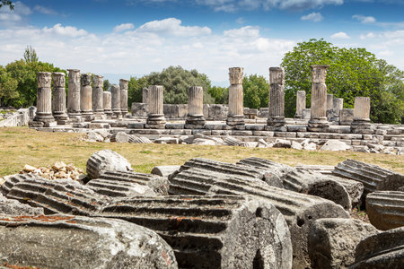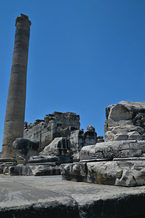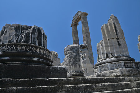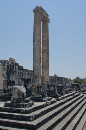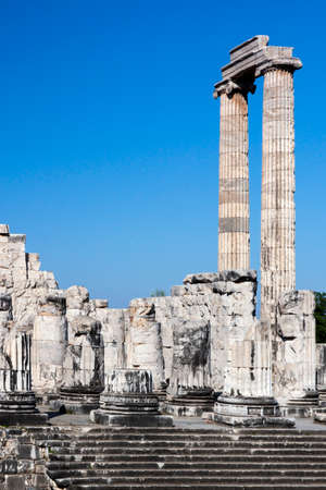 beautiful old ruins of the ancient temple of Apollo in Didim, Turkey on a hot summer day