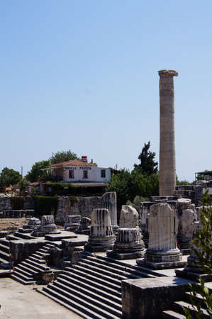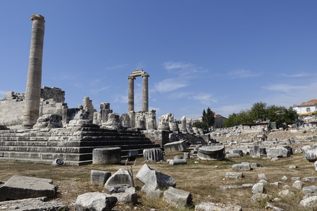 A view of the impressive ruins of the Greek Temple of Apollo in the town of Didim in Turkey.