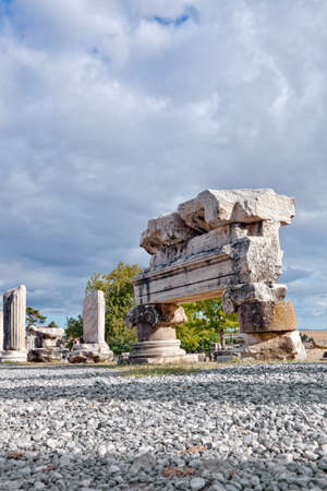 Ruins of agora, ancient city in Side in a beautiful summer day, Antalya, Turkey. High quality photo