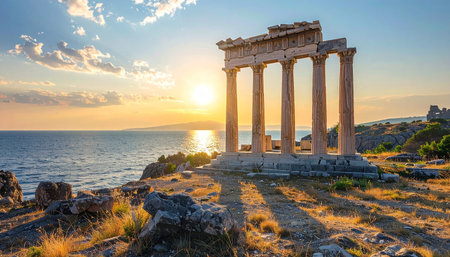 Temple of Apollo on sunset in Side, Turkey.