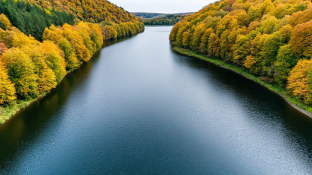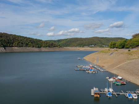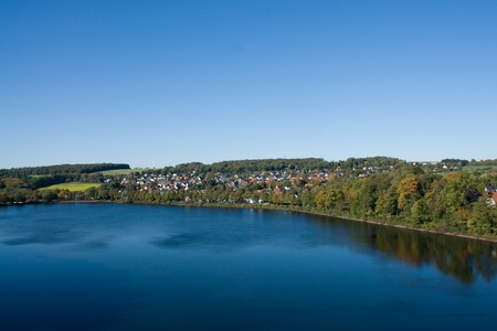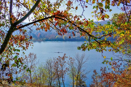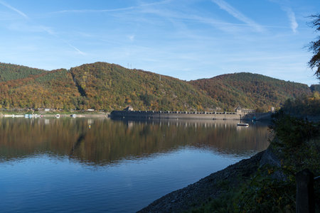 Rur Reservoir, Panoramic view of the Rur Lake in autumn, Germany