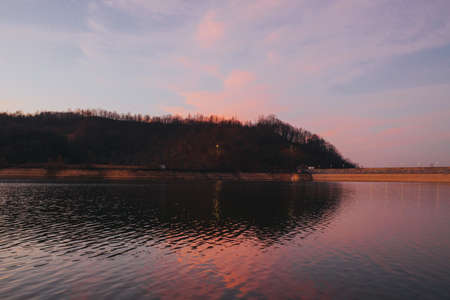 Edersee dam wall Germany in the sunset. clouds in the sky