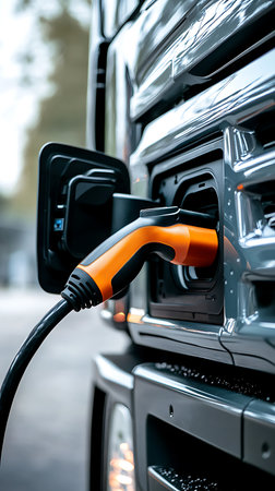 Hybrid electric truck charging at station Future Eco-Friendly Transportation Sustainable Energy Solutions