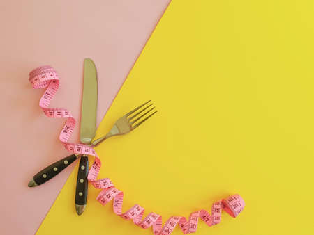 Fork, knife, plate measuring tape on a colored background