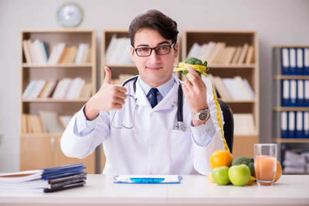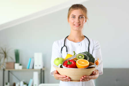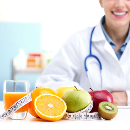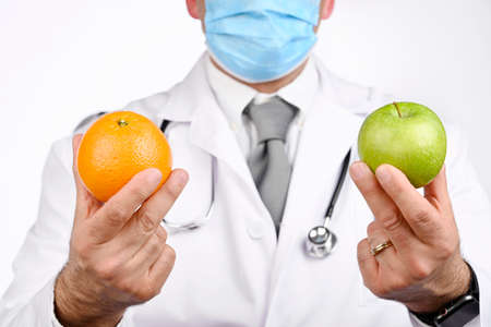 Health concept. Nutritionist doctor advises us to eat fruit. Healthy diet.
