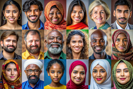 Celebrating diversity in smiling faces from various backgrounds and cultures