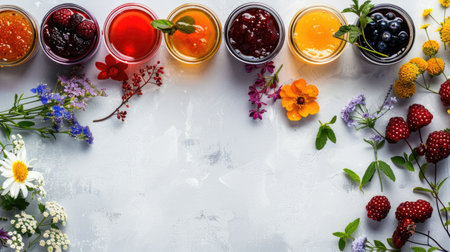 top view of various fruit preserves, created with generative ai