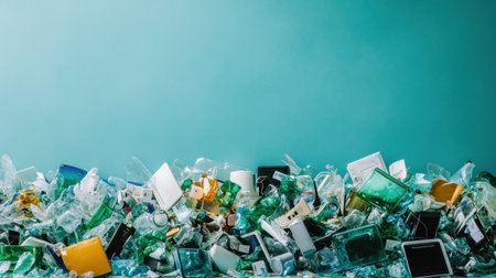 A striking image of a large pile of mixed garbage and waste against a vibrant solid color background, highlighting the critical issues of pollution and recycling challenges in modern society.